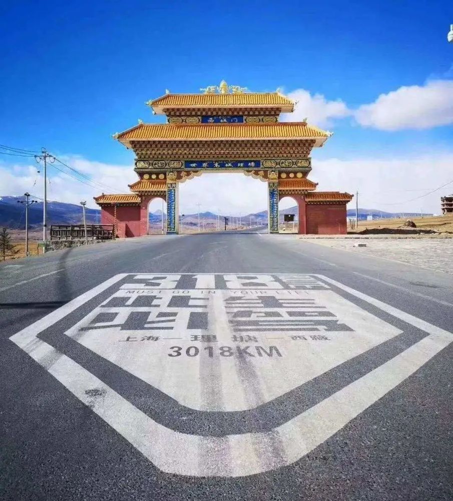 在理塘标志性的建筑西城门前,有“此生必驾318”地标,这里是318国道里程3118公里处,也是首个“国民公路G318”地标处。