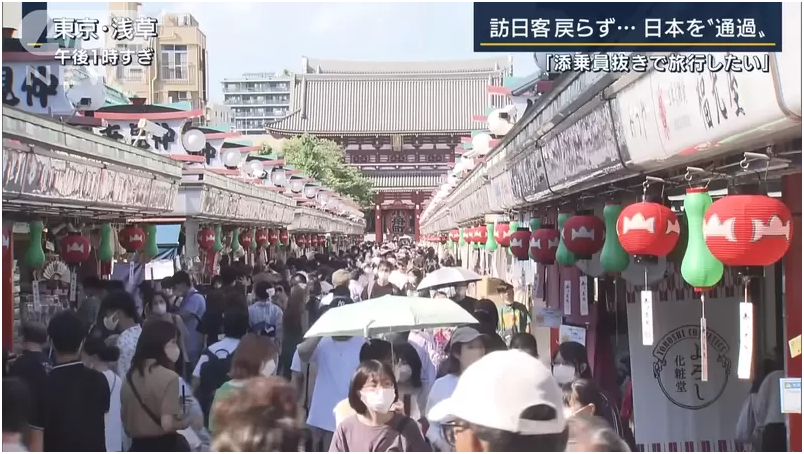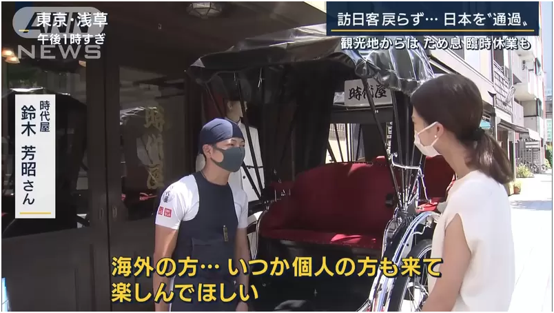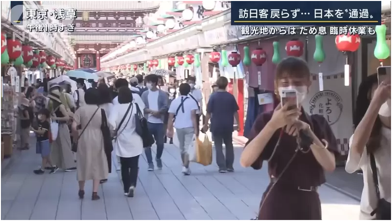 回过头记者来到了一开始提到的浅草,因为是暑假的关系所以这边的游客很多,但现场几乎看不见任何海外的观光客,对此期待访日游客恢复的旅游行业的人说,需要团体活动的时候,是需要通过旅行社下订单,因此旅客还是很少。