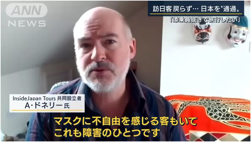 另外对于想要去日本观光的观光客来说,还有一点不方便的地方就是...去日本旅游必须要有随行导游,必须全程戴上口罩,并且严格遵守事前规定的旅游路线,对此国外的旅游专员表示,大多数的人其实不希望导游跟着旅行,他们想自己探索日本,这也一定程度影响了游客的选择。