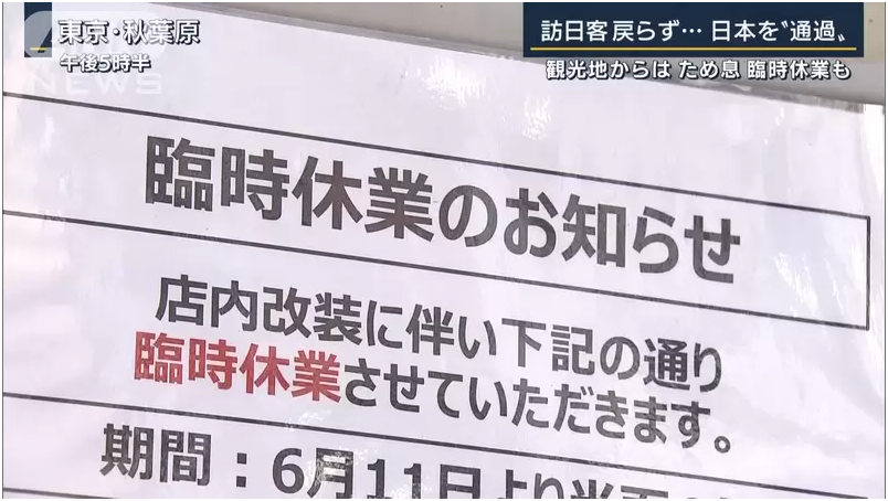 当时表现出观光客爆买象征的秋叶原家电量贩店,而2022年的现在是处于关门的状态,在卷门的外面张贴了临时休业的讯息,而且并没有写上什么时候再度营业的讯息。
