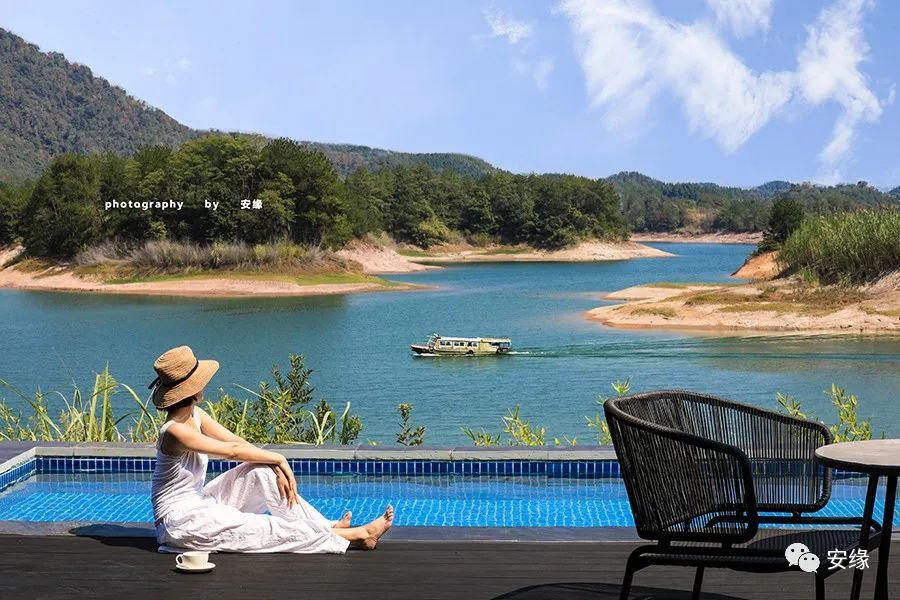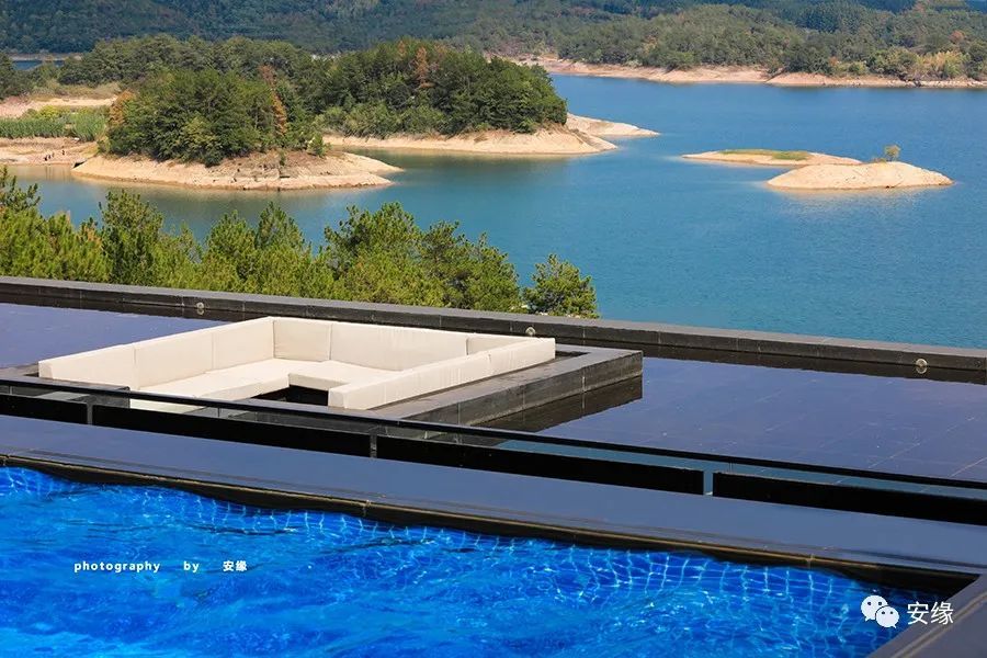 无边泳池,提供了一个极佳的观赏千岛湖安麓酒店全景的视野。