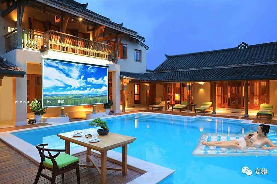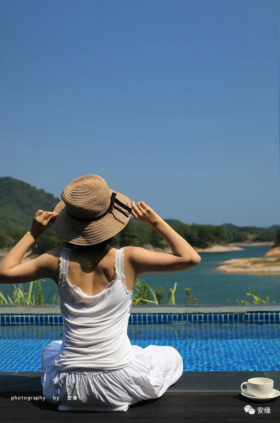 泡在位于半坡的泳池,欣赏着因地势形成的水天相接的画面,感觉自己与千岛湖的湖光山色融为了一体。