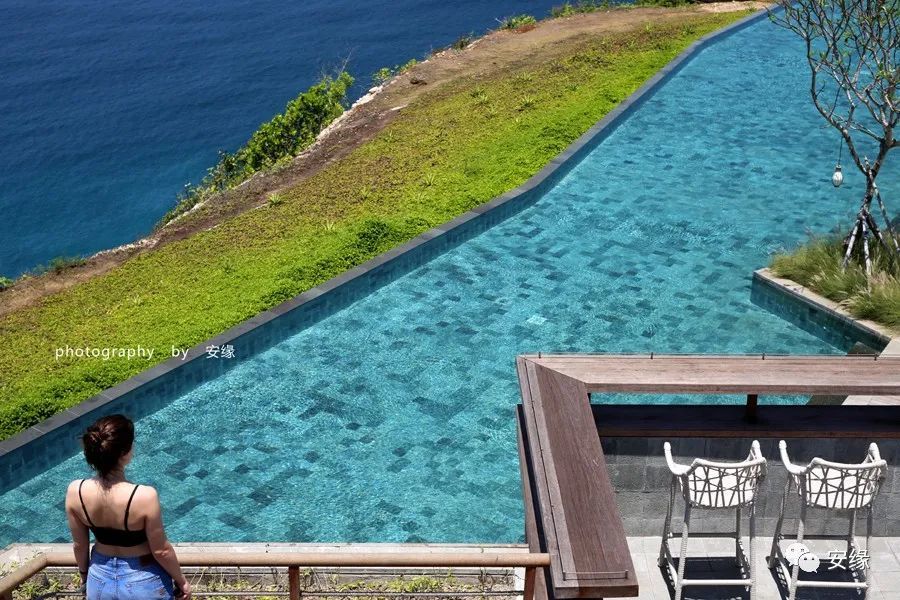 酒店的室外无边泳池,独立于酒店的主体建筑之外,建在距离酒店约1公里的山坡上。