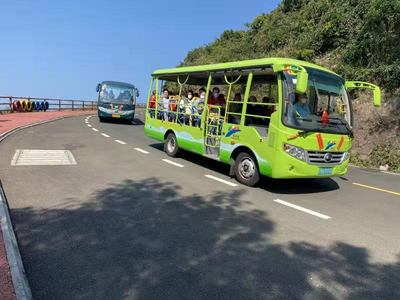 铜鼓岭登山观光电瓶车滚动发车,沿途风光无限,有快意雄风海上扑面而来,非常惬意。
