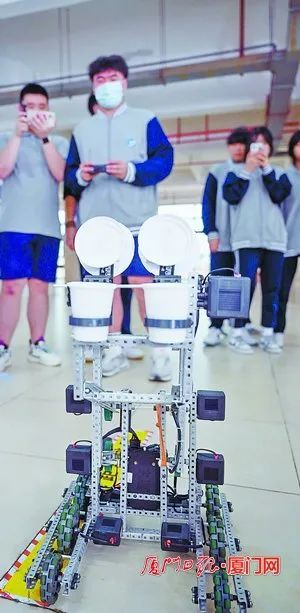 ▲职教高考要取得好成绩,职业技能测试不能临时抱佛脚。图为厦门的学生在日常学习中测试自己制作的智能编程机器人。