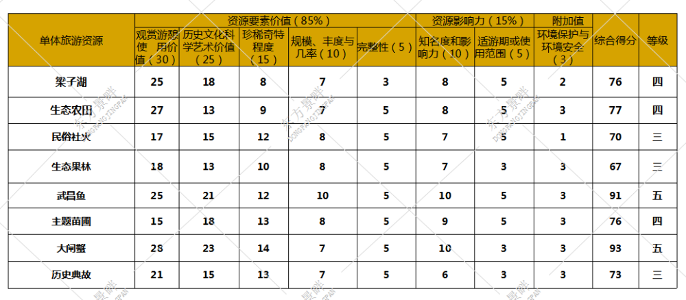 旅游资源评分核算