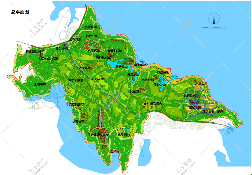 依托该区域多变地形和开阔水域,打造富有动感时尚气息的亲水休闲游憩区,构建后湖海国家农业公园最富活力的休闲娱乐区域。