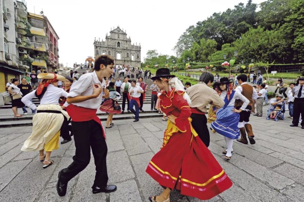 每年四月初八,澳门人举行“鱼行醉龙节”,当天会派发“龙船头饭”,人人皆可享用。葡萄牙纪念日时,人人都可以穿上节日氛围的葡萄牙风情的服饰行走在街头。