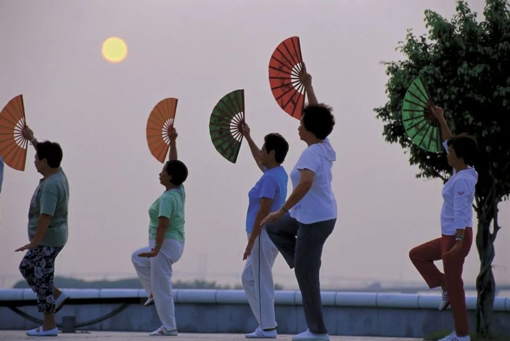 林健璋/ CTPphoto 妇女在黄昏时练习扇舞