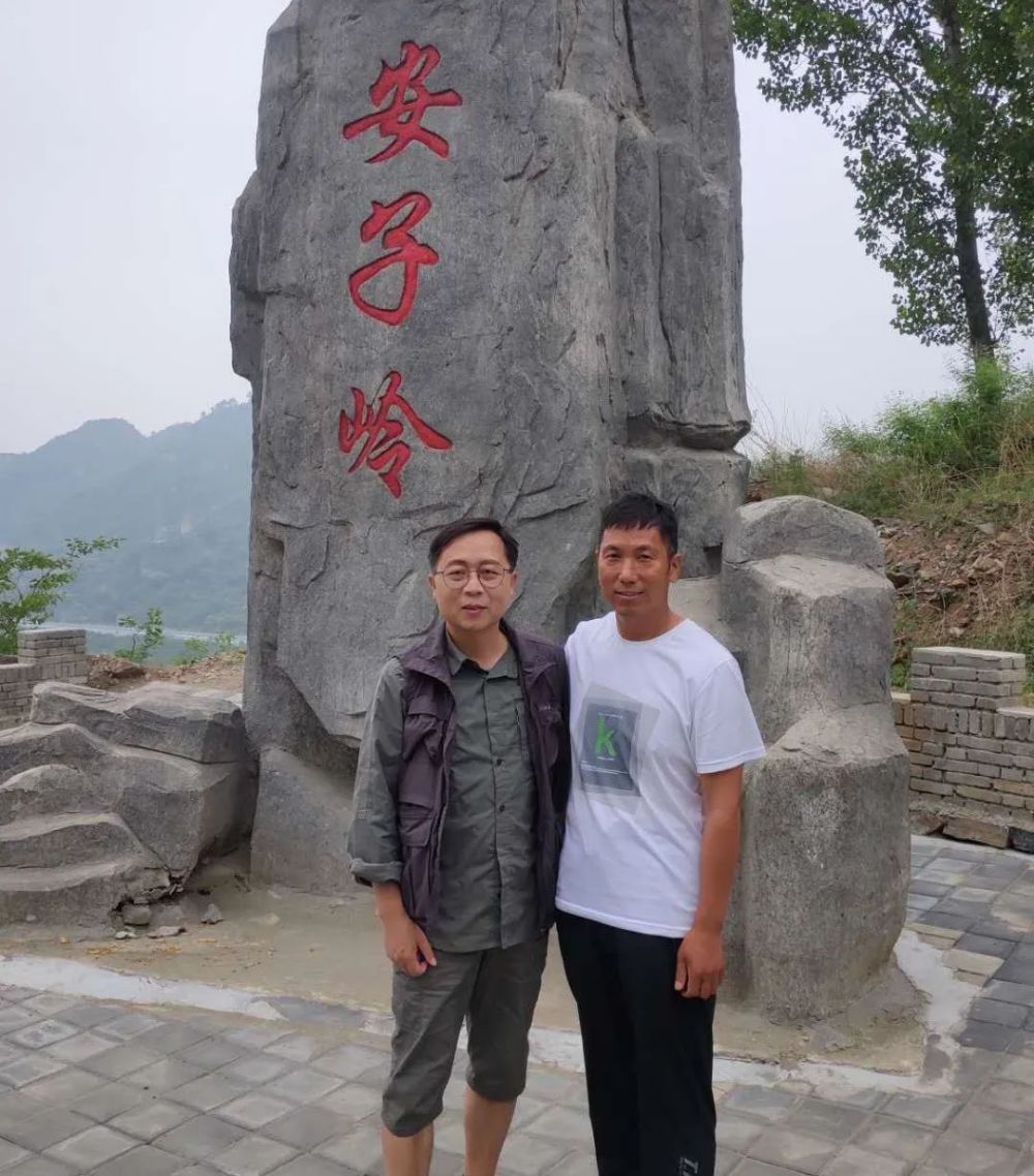 ▲导演汪洁拍摄安子岭村与贾占春合影