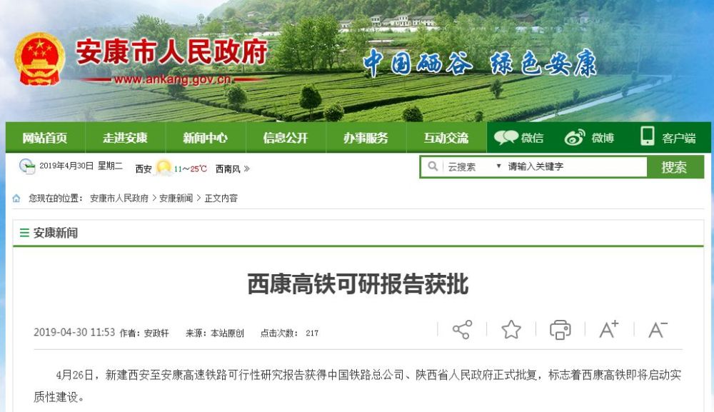 4月26日,新建西安至安康高速铁路可行性研究报告获得中国铁路总公司、陕西省人民政府正式批复,标志着西康高铁即将启动实质性建设。