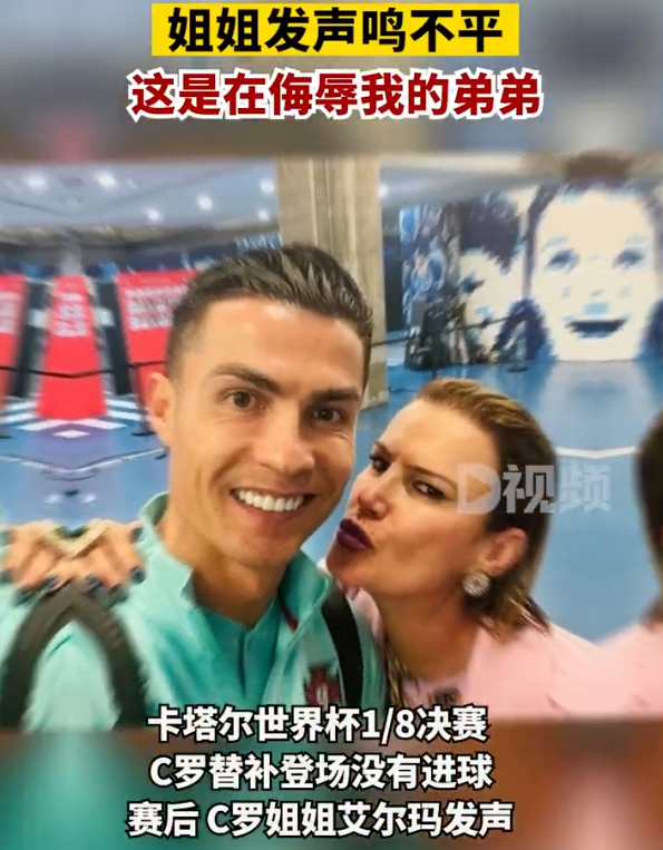 12月7日,卡塔尔。世界杯1/8决赛,葡萄牙6-1大胜瑞士。本场比赛中,C罗坐到替补席,在第73分钟被换上,没能收获进球。赛后, C罗姐姐艾尔玛发声,表达对葡萄牙队的不满,认为让C罗打替补是在侮辱葡萄牙巨星!