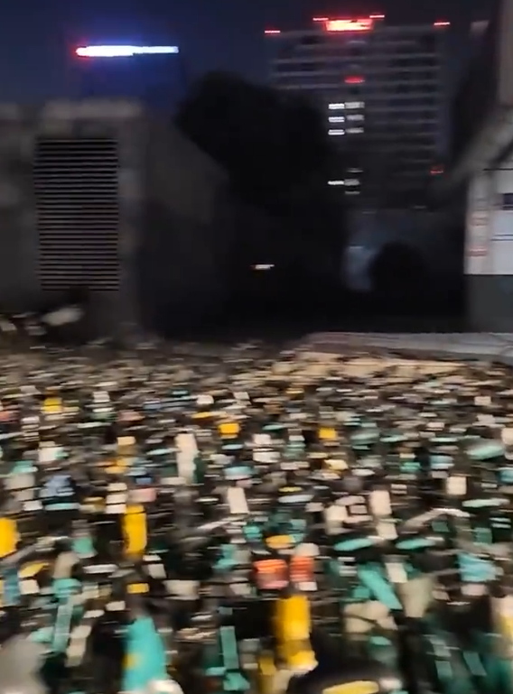 南京一地铁口被大量共享单车堵死,导致市民无法进站