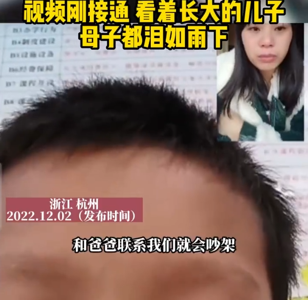 近日,浙江杭州。女子和丈夫离婚5年没见到孩子,太思念儿子,加了班主任的微信,才如愿见到心心念念的儿子。