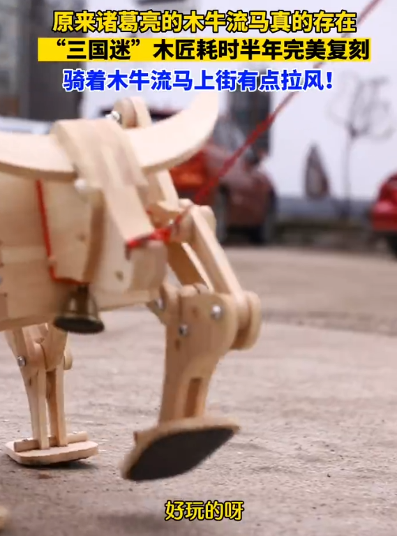 木牛流马是一种木制运输器具。据历史记载, 数千年前,诸葛亮曾在北伐时使用, 为蜀汉10万大军运输粮食。如今,在衢州龙游,一位诸葛文化的粉丝凭自己一双巧手,花半年时间打造出现实版木牛流马。