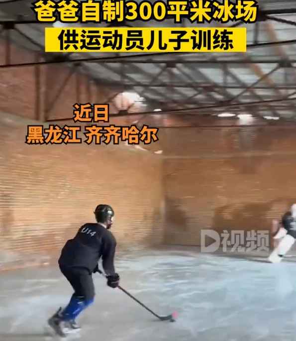 爸爸自制300平米冰场供儿子训练 ,妈妈:孩子是冰球运动员