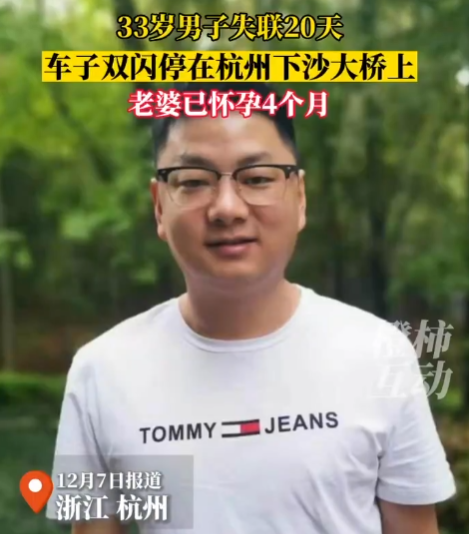 这两天,怀孕4个月的小姚,一直在找他老公李前伟。两人结婚5年,平时小姚和婆婆住在杭州下沙,老公李前伟在宁波工作。每周,李前伟在两地回来两次。11月19日周六,李前伟应该从宁波开车回下沙。可晚上9点,小姚还没等到老公,当晚11点左右,小姚接到电话,说在下沙大桥上发现了老公的车子。车子完好,里面看上去没有异样,电脑,身份证、银行卡都在,只是少了手机。从那天算起,今天是李前伟和家人失去联系的第20天。目前,具体情况还在了解中。