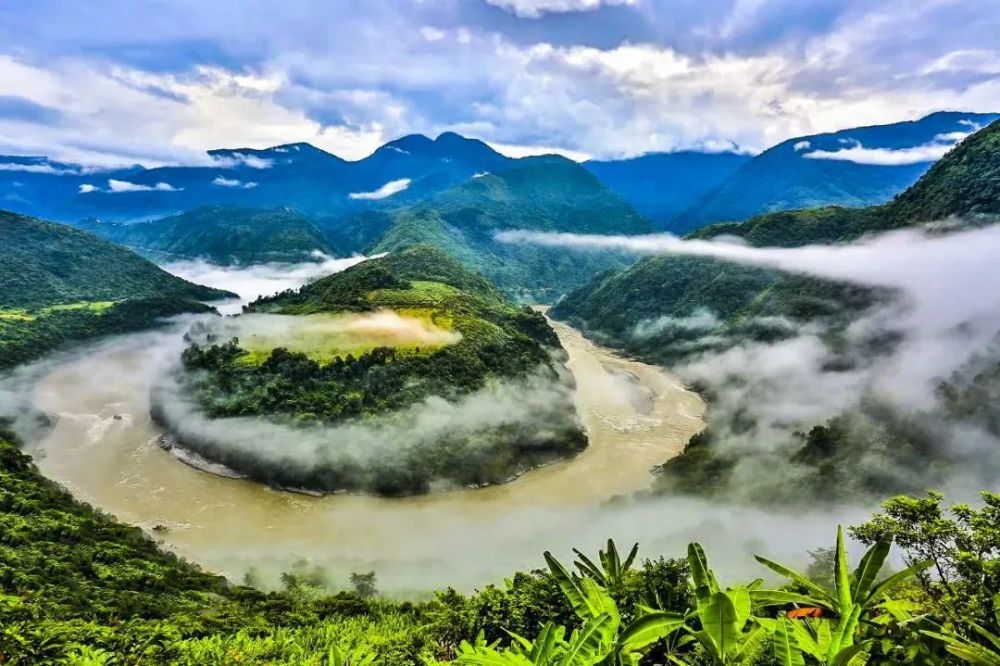它有一个甜蜜蜜的名字,叫“果果塘”,它位于墨脱县德兴乡,距墨脱县城约12公里,距德兴乡政府约4公里,可驱车抵达,于此可见奔涌而来的江水如蛇形般突然转向,罕见的景观让人叹为观止,峡谷间雨雾缭绕,犹如仙境;繁盛的植被,掩映在这云雾之间,美不胜收。