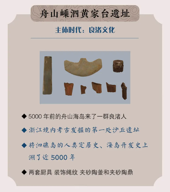 2021年度浙江考古重要发现评选名单中舟山嵊泗黄家台遗址实力上榜!嵊泗黄家台遗址是浙江境内发掘的第一处沙丘遗址,将泗礁岛的人类定居史、海岛开发史上溯了近5000年,“海上良渚”自此起航!