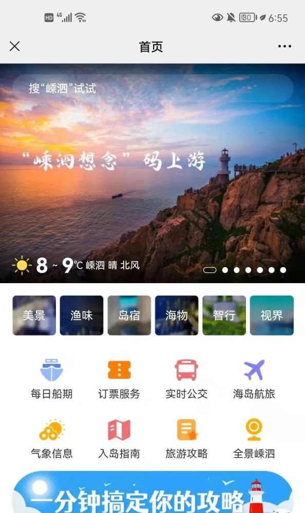 ?具体每日交通信息,景区景点,旅游攻略,住宿餐饮等请“返回”查看本期微信封面下方的“交通攻略”、“畅游嵊泗 ”、“旅游服务”等栏目.