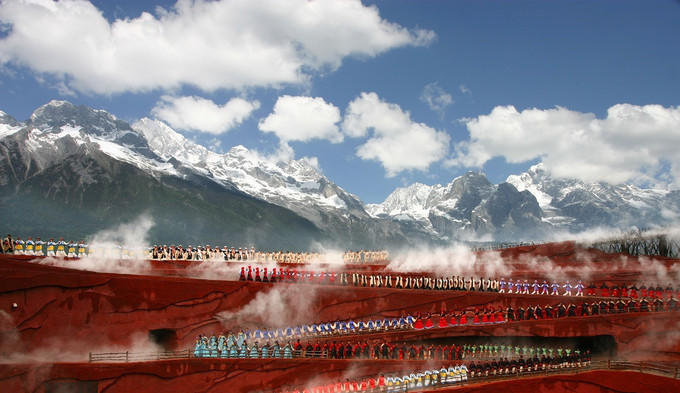 3、印象丽江:是张艺谋导演的“印象系列”之一。演出以雪山为背景、以民俗文化为主题、以当地农民做演员,在海拔3100米的玉龙雪山甘海子蓝月谷剧场露天舞台,真实的展示出原住民对天、地、人、山的感情。