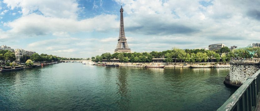 夏天旅游季巴黎埃菲尔铁塔及塞纳河全景