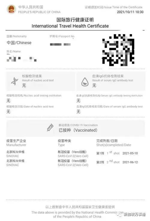 在抵达新加坡前2周,已完成符合世卫认可的新冠疫苗接种。一般来说,打完2剂即可。