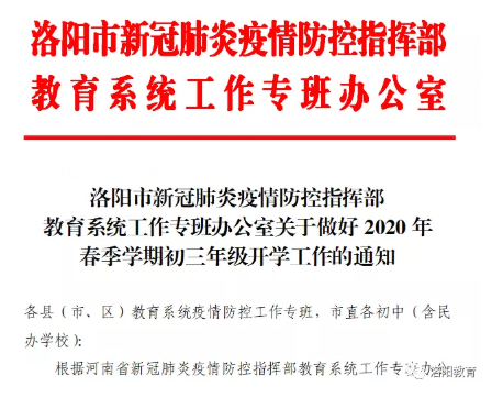 4月13日,洛阳全市初三年级报到,组织进行开学第一课;4月14日正式上课。