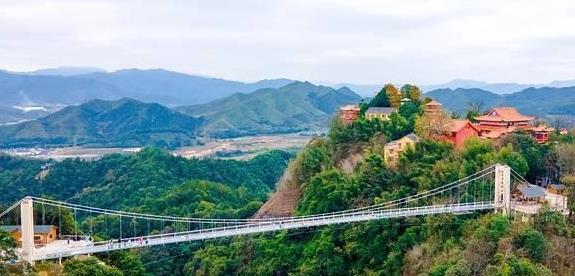 眼前所看到的这张图片是整个天龙山景区的核心,一条凌空于悬崖峭壁上的玻璃桥与一座百年古刹相伴,壮观又古韵盎然,让人欣然向往。