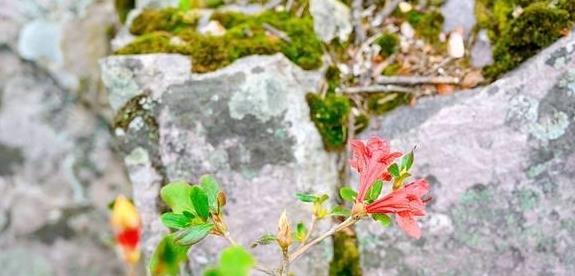在这峭壁间有一条梯阶而上,梯阶处为撑腰岩,就是历经成千上万年风化而成的岩沟,在一些山上也经常可以看到这种景观,就是在上下岩沟之间放置一根木枝或树杈,这样可以保佑人不会腰疼,感兴趣的话可以撑一根树枝试试。