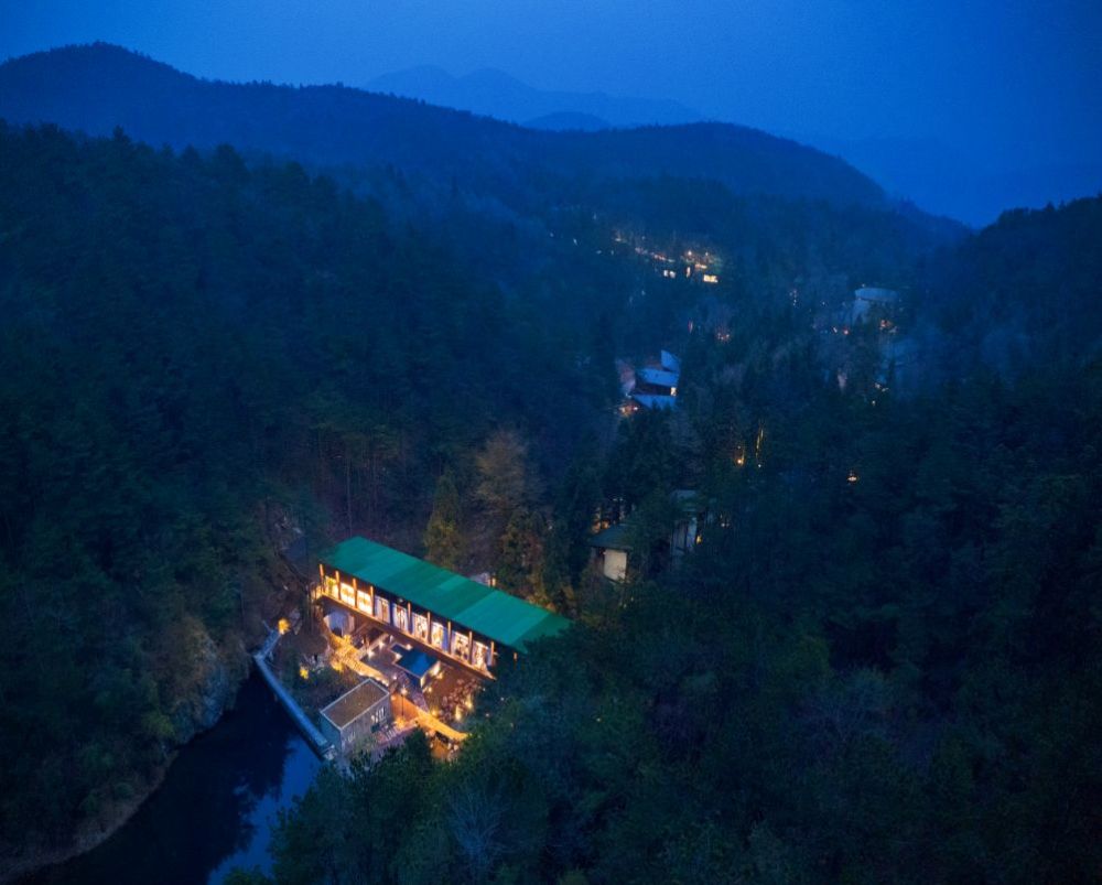 安缦创始人耗资数亿参与建造,依山傍水的森林别墅引温泉入室。深藏在山林间的别墅,整个度假村的植被覆盖率达到93%以上,酒店公共区、别墅分别散落于千亩山林与溪谷间。每栋建筑都拥有大型落地窗观景露台,将原汁原味的竹林山景引入室内,最惊喜的还是酒店把全国三大温泉之一的南溪温泉引入室。让你在房间里就能享受有“神仙水”之称的私场。
