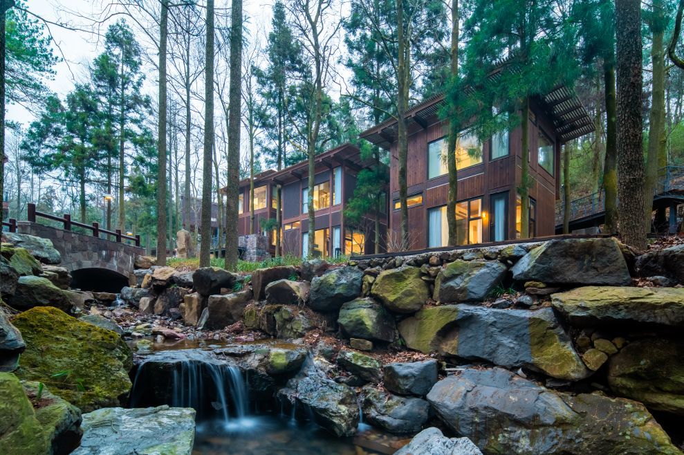 置身在这里,享受一把”明月松间照,清泉石上流“的绝美圣景,是不容错过的度假之地。造型独特的森林Villa错落有致地镶嵌在茂密山林中,处处呈现着自然的灵气。清爽的山风搭配“曲水流觞”式的生态地貌,更是增添了几分与世隔绝的味道。
