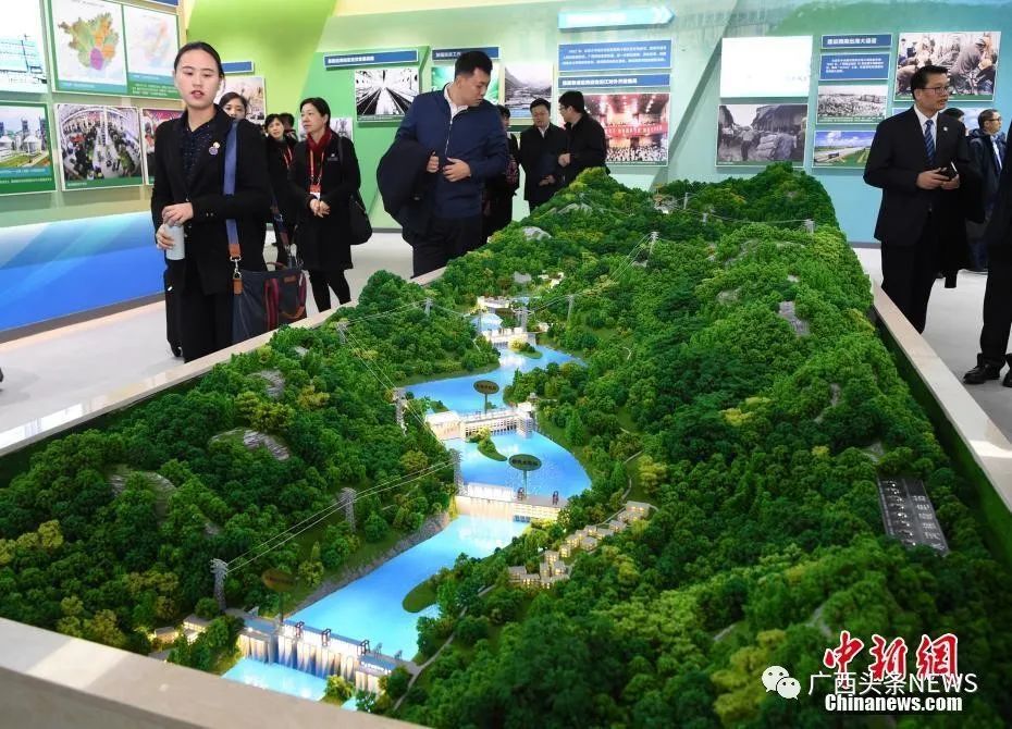 广西规划馆集中展现改革开放40年来广西壮族自治区在经济、政治、文化、社会、生态等方面创造的辉煌成就。图为展览展示的红水河梯级电站模型。中新社记者 侯宇 摄