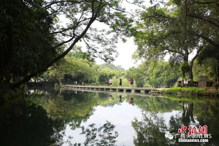 游人行走在灵渠泄水天平坝。朱柳融 摄