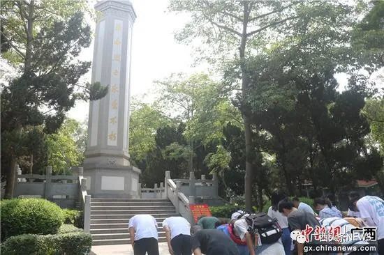 广西大学师生在梧州市珠山革命烈士纪念碑前缅怀革命先烈。
