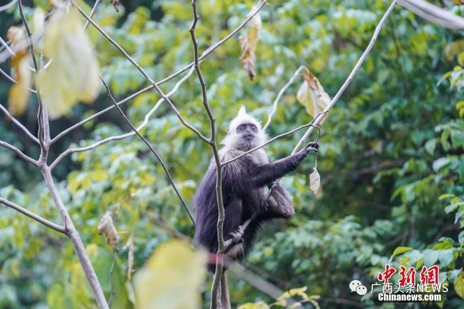 白头叶猴是中国特有的国家一级保护野生动物,野生种群90%以上分布在广西崇左白头叶猴国家级自然保护区。中新社记者 陈冠言 摄