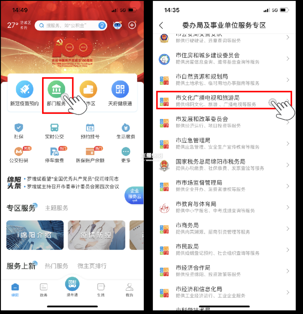 从“部门服务”板块点击进入“市文化广播电视和旅游局”
