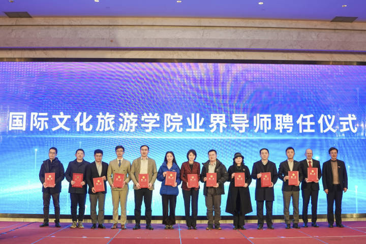 成立大会上,还举行了浙大城市学院国际文化旅游学院首届业界导师聘任仪式。浙大城市学院党委书记洪庆华为首批业界导师颁发聘书,聘请雷迪森酒店集团党委副书记、纪委书记、工会主席周洪杰先生,纳德自由酒店总经理余淑萍女士,景域驴妈妈集团副总裁任国才先生,浙江世贸君澜大饭店总经理杨国荣先生,杭州市国际会展博览集团董事长李健先生,浙江大学城乡规划设计院副院长杨飞先生,浙江茗苑旅游规划设计研究中心总经理陈一帆先生,杭州远洋凯宾斯基酒店总经理皮埃礼(Alexander Pichel)先生,杭州凝聚公关策划有限公司副总经理燕民先生,杭州博物文化公司总经理张敏先生,杭州香格里拉酒店驻店经理费晓虹女士,杭州中国旅行社全国特级导游潘伊玫女士等12位为国际文化旅游学院业界导师。