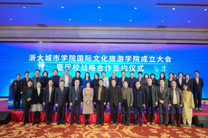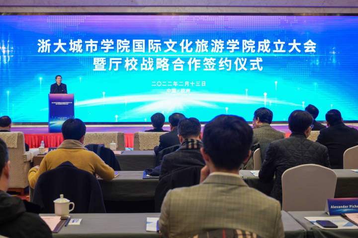 2月13日,在杭州望湖宾馆,浙大城市学院国际文化旅游学院成立仪式隆重举行。这是浙江省首家“国际文化旅游学院”。