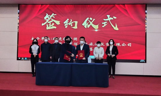 1月12日,延边歌舞团与吉林省中佰文化旅游投资有限公司签约仪式在龙井市琵岩山温泉古村落举行,双方将发挥各自优势,助力延边文旅业发展。延边歌舞团副团长咸顺女、朴春善、金成柱、罗松花,中佰文旅集团董事长陈加利出席会议。