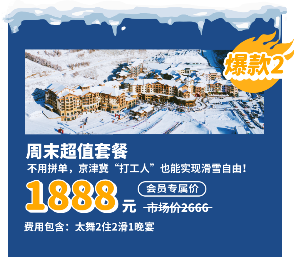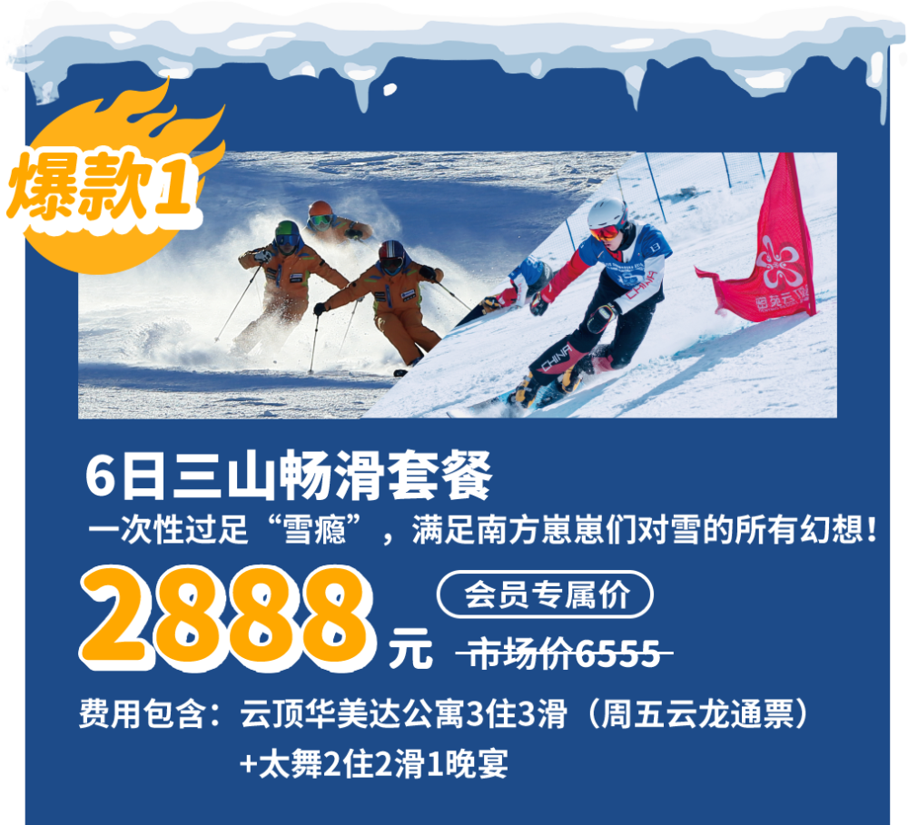 在这个期盼已久的滑雪季,2020融创文旅首届“燃”冰雪季,强势联合崇礼三大雪场,重磅推出低至4折住滑度假套餐,3大超抵爆款!