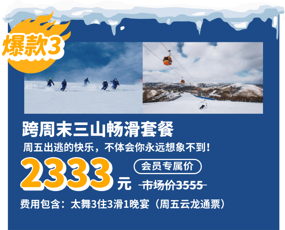 费用包含:太舞3住3滑+1盛典晚宴(其中1滑为周五云龙通票)