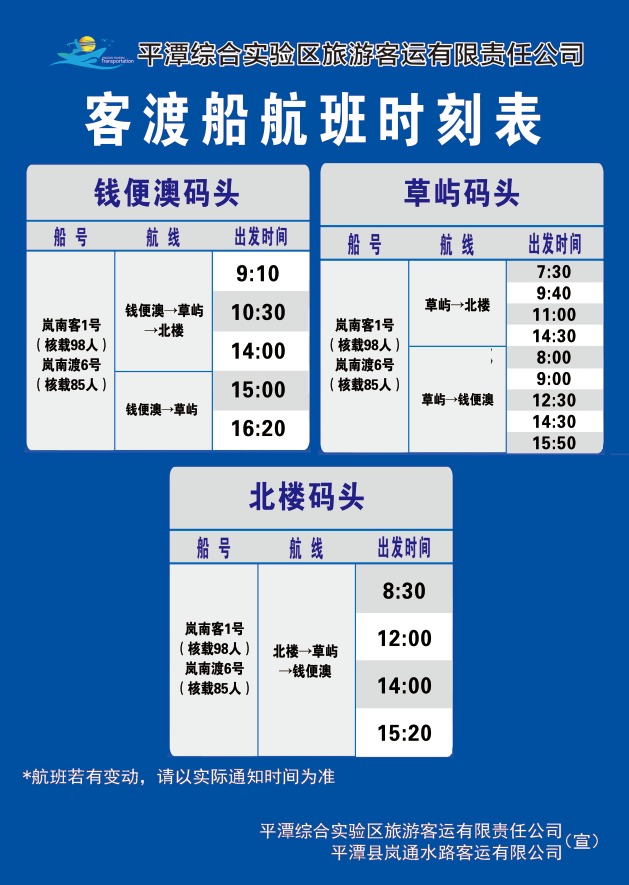 附上离岛轮渡航班表