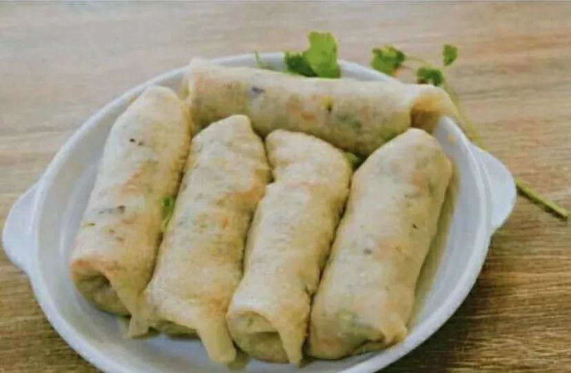 面饼有多种款式,一种是把蛏、肉丝、豆芽等馅料调进面粉里煎成饼;另一种像春卷,把面张和馅料分别制作成熟食,以面张卷上馅料吃。现在多为第二种吃法。这是平潭人过端午必吃的一道美食!