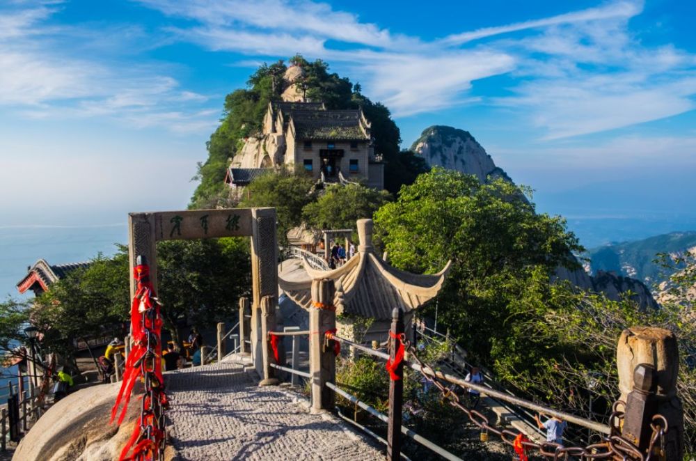 西峰是华山最秀丽险峻的山峰,海拔2082.6米,华山主峰之一,因位置居西得名。峰顶翠云宫前有巨石状如莲花,故又名莲花峰。