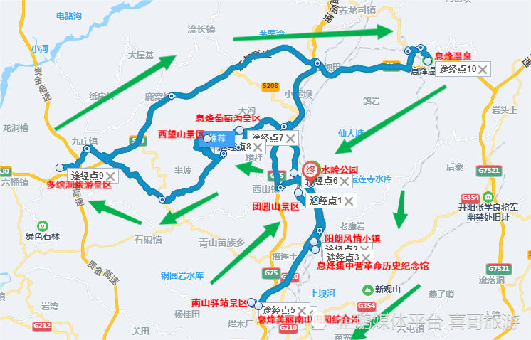2、推荐息烽县景点自驾游行程路线:息烽县-团圆山景区-阳朗风情小镇-息烽集中营革命历史纪念馆-息烽美丽南山田园综合体-息烽县南山驿站景区-水岭公园-息烽葡萄沟旅游景区-西望山景区-息烽县·多滨洞旅游景区-息烽温泉-息烽县。