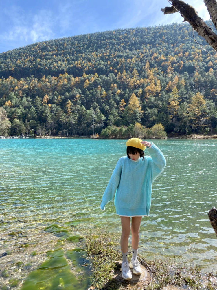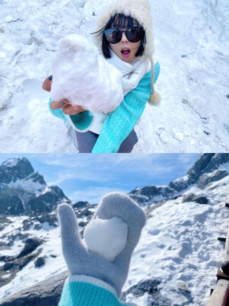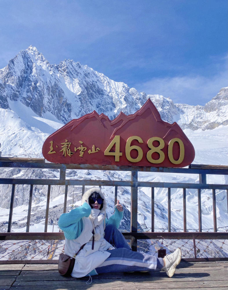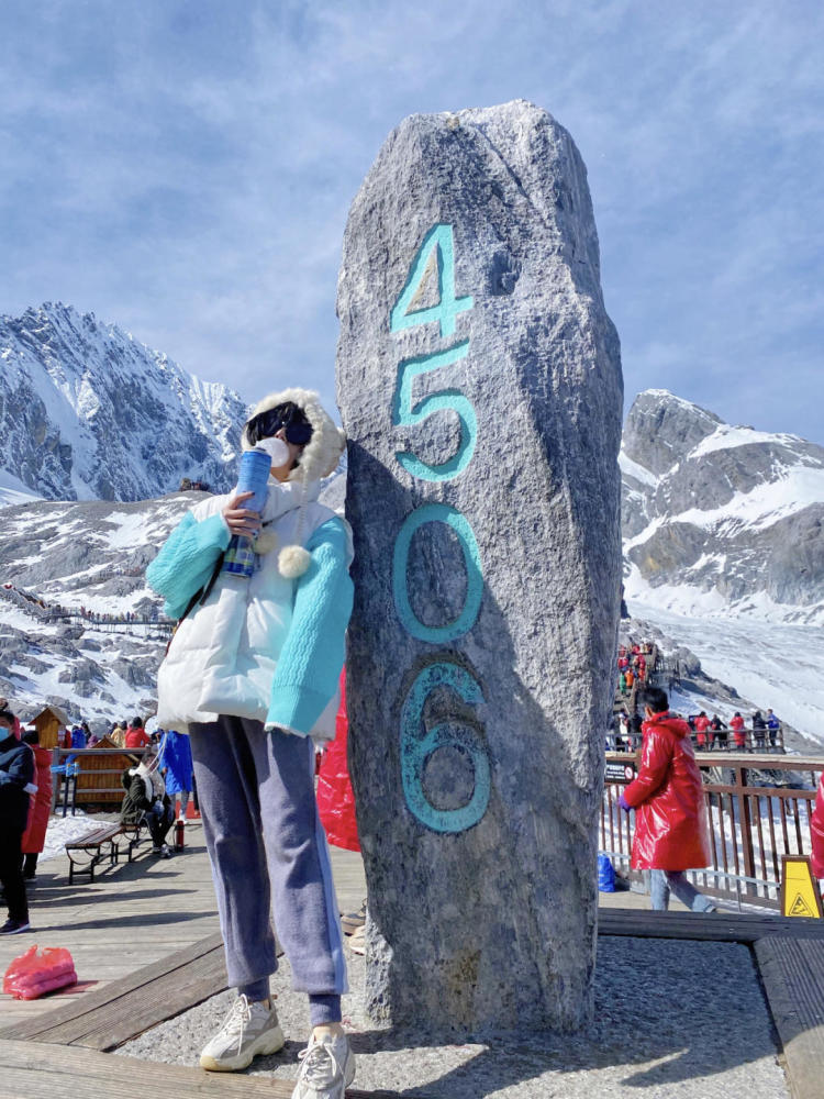 2、服装:一定要穿亮色!很出片!一定要戴墨镜!!太阳照在白雪上反射过来 真的亮瞎双眼!一定要涂防晒!!4680的海拔和太阳近距离接触!山顶风很大!帽子会吹飞!