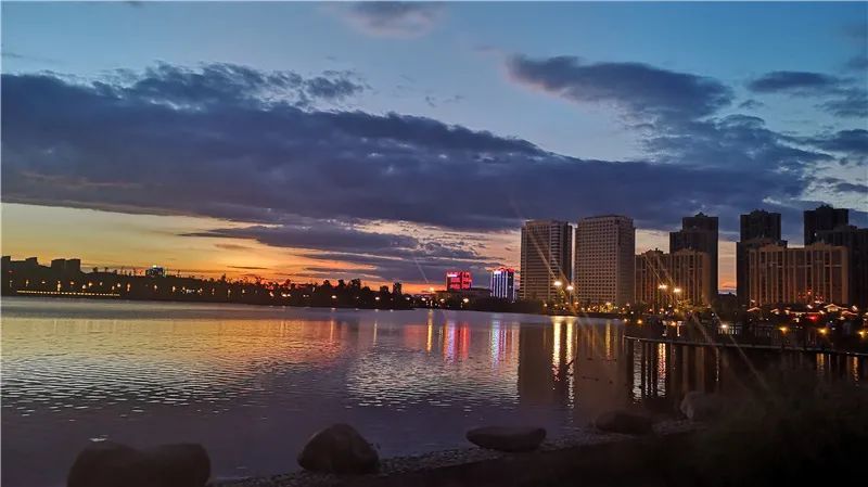 对楚雄人来说,彝海公园像是自家的后花园,在炎炎夏日给大家送去一份清爽。晚饭后到公园逛逛,还能邂逅美丽的日落景观,灿烂的云霞印在天空,整个彝海公园被照得辉煌夺目,无论是重叠的远山还是静谧的湖水,都散发出耀眼光芒。