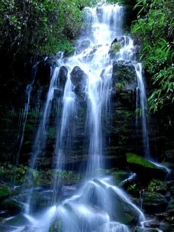 所谓三潭,是指瀑布群中落差最大的三级瀑布,以上游至下游为次序,第一级高19米,第二级高121米,第三级高82米,三级瀑布浑然一体,分别形成三个深潭,故名三潭,有“西南第一高瀑”的美誉。