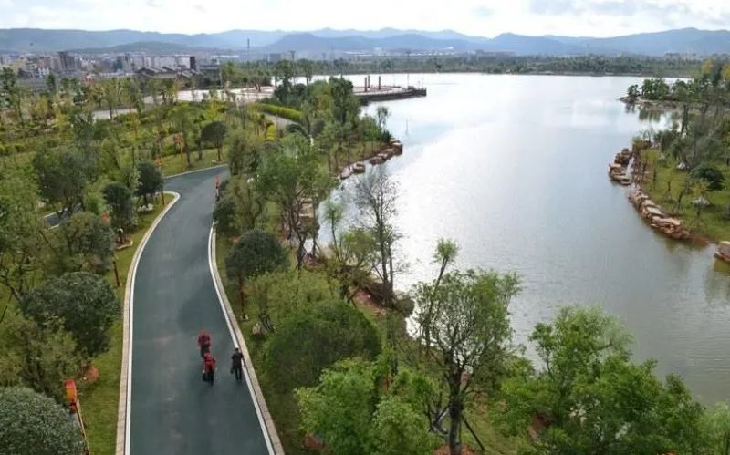 盛夏时节,彝海公园内湖色碧蓝、树木青翠,美景让人赏心悦目。伴着早晚适宜的温度,园里分外热闹,市民三三两两,或携家人或邀好友漫步于此,感受这里恬静、美妙的风光。